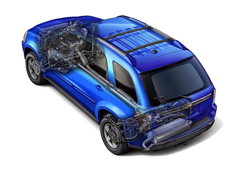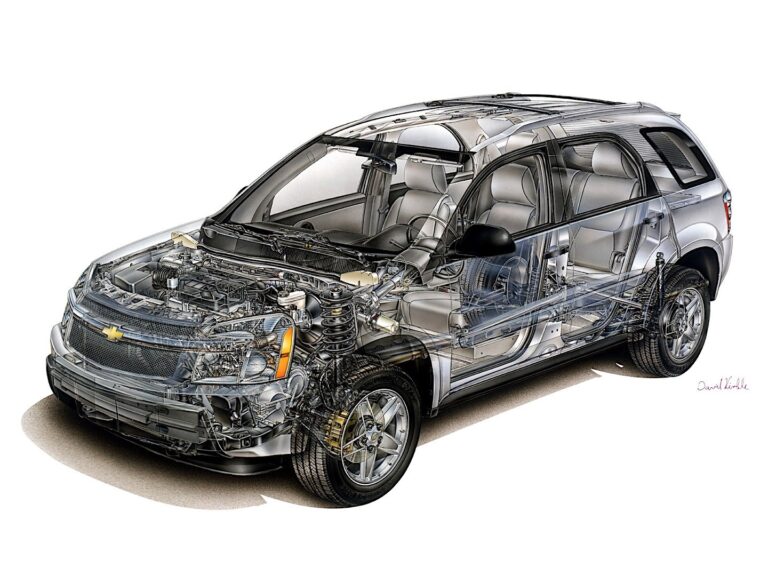 O zarysie Trailblazera, Equinox mógłby być mylony z większymi modelami, jednak jego profil lepiej zdradzał prawdziwe intencje. Przedni pas zdobił chromowany poziomy pas rozciągający się od jednego reflektora do drugiego, wzdłuż czarnej osłony chłodnicy. Z boku, wznosząca się linia okien nadawała dynamiczny wygląd lekkiego SUV-a. Z tyłu, pochylona ku przodowi klapa bagażnika miała spoiler u góry. Jej tylne lampy, z przezroczystym designem soczewek, wyglądały raczej na elementy aftermarketowe niż oryginalne.