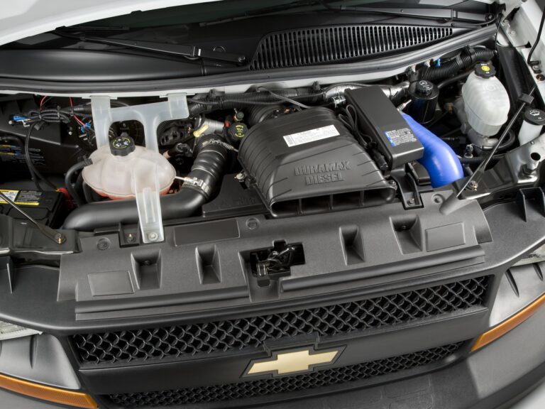 Silnik turbo-diesel Duramax 6.6L zapewnia również cichsze doświadczenie jazdy i lepszą oszczędność paliwa. Jest dostępny w modelach G2500 i G3500 Express Cargo Van oraz Cutaway. Funkcje takie jak elektroniczna kontrola przepustnicy, szybkie nagrzewanie świec żarowych i łatwe do serwisowania elementy zwiększają komfort jazdy i posiadania.