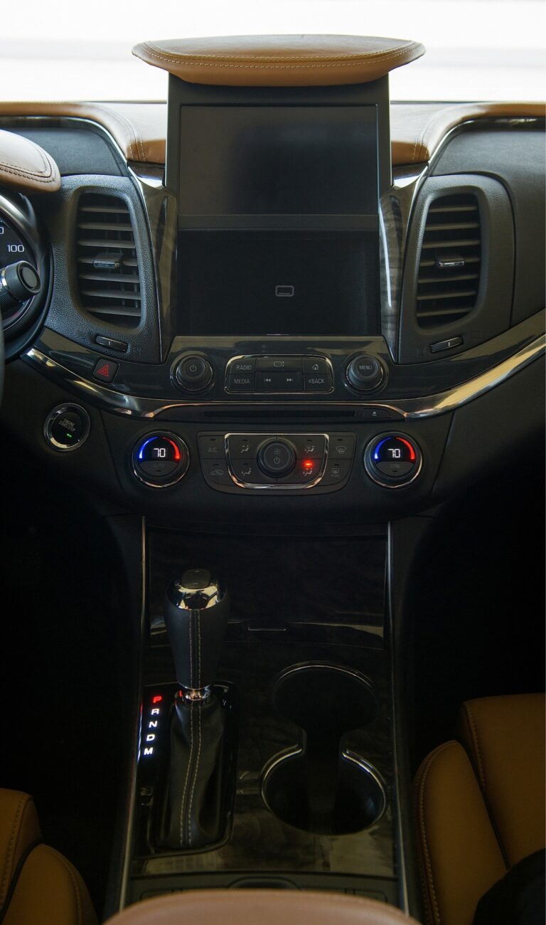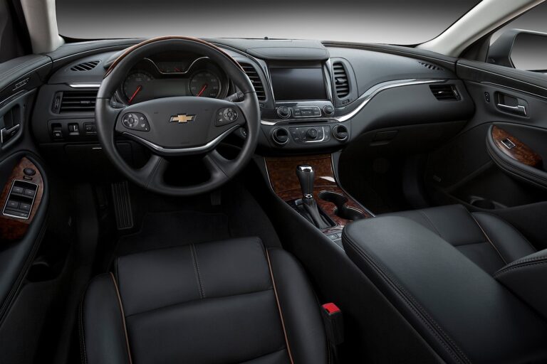Impala 2014 rozwija charakterystyczne dla Chevroleta wnętrze w stylu podwójnej kokpitu, zwracając większą uwagę na szczegóły i oferując wyższej jakości funkcje – widoczne we wszysktich elementach, od płynnego przejścia od wyrazistego panelu wskaźników do paneli drzwi, przez dostępne oświetlenie ambientowe, po miękki dotyk materiałów i luksusowy wygląd przeszyć na siedzeniach. Panel wskaźników integruje dynamiczny zespół wskaźników z standardowym 4.2-calowym kolorowym wyświetlaczem z konfigurowalnymi funkcjami dla centrum informacji dla kierowcy. Ośmiocalowy ekran dotykowy z ukrytym schowkiem za nim jest połączony z dostępnym systemem Chevy MyLink w modelach LT i LTZ.