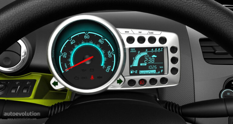 Centralnym punktem kabiny jest 'pod’ z przyrządami w stylu motocykla, który znajduje się na szczycie kolumny kierowniczej i dostarcza wszystkie niezbędne informacje w kompaktowy, ale łatwy do odczytania sposób. Anologowy prędkościomierz wspierany jest przez cyfrowy obrotomierz, tak jak w sportowym motocyklu, podświetlany eleganckim, lodowym niebieskim światłem przy włączonych reflektorach. Jest to naprawdę unikalne dla tego sektora i jasno pokazuje zamiar Chevroleta Sparka, by przywrócić zabawę do funkcji.