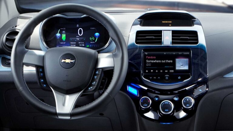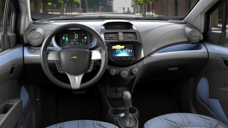 Wnętrze Spark EV zachowało prosty design wersji spalinowej, ale wyposażono je w zupełnie nową deskę rozdzielczą z 7-calowym kolorowym wyświetlaczem TFT. Na centralnej konsoli znajdował się kolejny wyświetlacz do systemu infotainment.