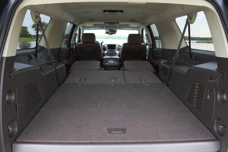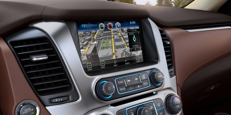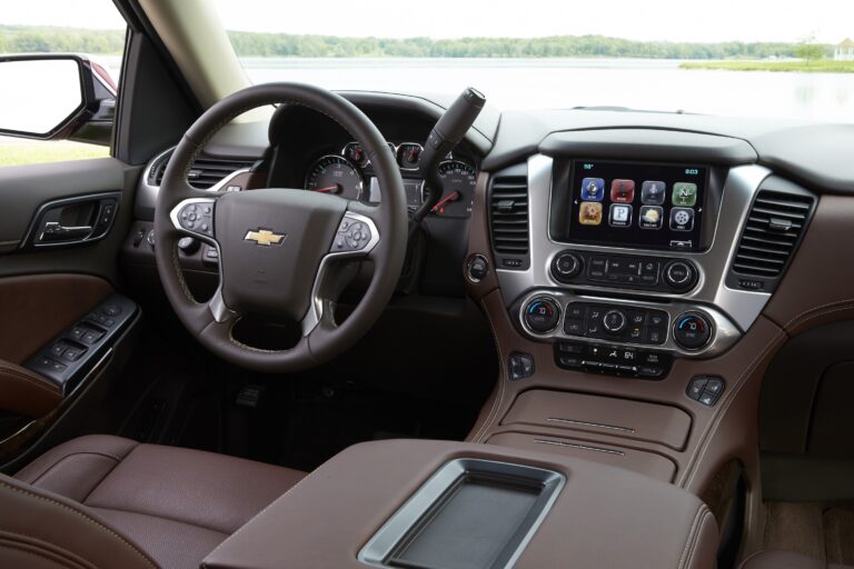 Wewnątrz, materiały premium i udoskonalona ergonomia pokazują połączenie wyrafinowania, rzemiosła i funkcjonalności w Tahoe i Suburban. Nowa deska rozdzielcza mieści dostępne radio z kolorowym ośmiocalowym ekranem dotykowym oraz zabezpieczoną przestrzeń za motorowym ekranem. Rozdzielona konsola centralna jest wystarczająco obszerna, aby pomieścić laptopa lub iPada.
