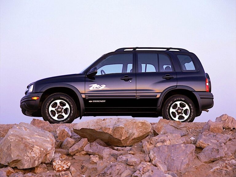 Na początek warto zauważyć, że Chevy Tracker wyglądał lepiej niż Geo Tracker. Miał zaokrąglone krawędzie i płynnie uformowane błotniki, które zastąpiły jego pudełkowego poprzednika. Samochód był dostępny w dwóch wersjach: pięciodrzwiowej lub trzydrzwiowej z miękkim dachem. Z przodu, emblemacie Chevrolet towarzyszył poziomy, chromowany grill. Na liście opcji znajdowały się zestawy ochraniaczy zewnętrznych.
