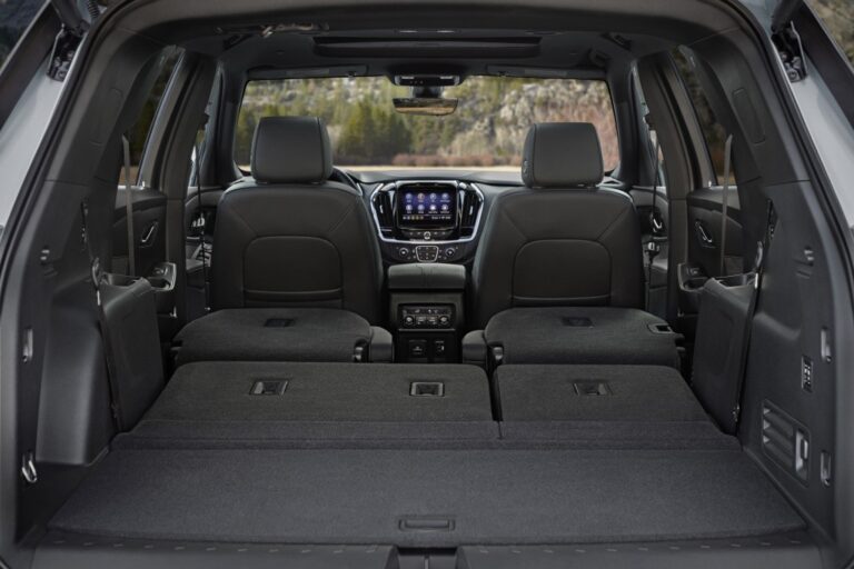 Chevrolet Traverse to samochód, który oferuje długą listę dostępnych funkcji oraz sporo przestrzeni wewnętrznej, idealnej dla dużych rodzin lub zapalonych podróżników. Posiada 7 miejsc, w tym trzeci rząd siedzeń oraz dużą przestrzeń bagażową z tyłu.