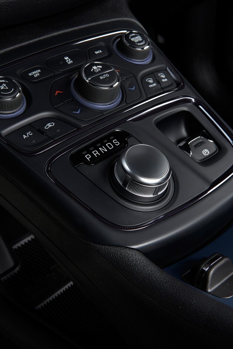 Właściciele nowego Chryslera 200 docenią innowacyjny pokrętło e-shift, które zastępuje tradycyjny dźwignię zmiany biegów w konsoli. Rotacyjne e-shift umożliwia intuicyjną obsługę z bezpośrednim i pewnym uczuciem. Wygodny, centralnie umiejscowiony, łatwy w obsłudze system zapewnia całkowitą kontrolę nad zaawansowaną dziewięciobiegową skrzynią biegów. Nowy design umożliwia łatwą zmianę biegów i pozwala na więcej funkcjonalnego i użytecznego miejsca w konsoli centralnej.