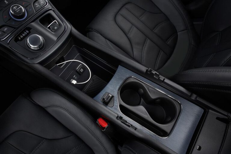 Przemyślany design konsoli centralnej, osiągnięty dzięki nowoczesnemu, w pełni elektronicznemu przełączaniu biegów z pokrętłem rotacyjnym, łączy w sobie piękno i funkcjonalność. Unikalna funkcja przechowywania z przejściem, do której zarówno kierowca, jak i pasażer siedzący z przodu mają dostęp, jest możliwa dzięki rotacyjnemu przełączaniu biegów, co jest nowością w tym segmencie. Przemyślany otwór z tyłu obszaru przejścia pozwala na bezpośrednie poprowadzenie przewodów i kabli z przedmiotów przechowywanych w tym obszarze do ukrytego zasilania znajdującego się w zasłoniętej konsoli centralnej. Konsola centralna charakteryzuje się innowacyjnymi, przesuwanymi uchwytami na kubki z płynącym, meblowym ruchem, co pozwala kierowcom i pasażerom wykorzystać przestrzeń w sposób, który najlepiej odpowiada ich potrzebom.
