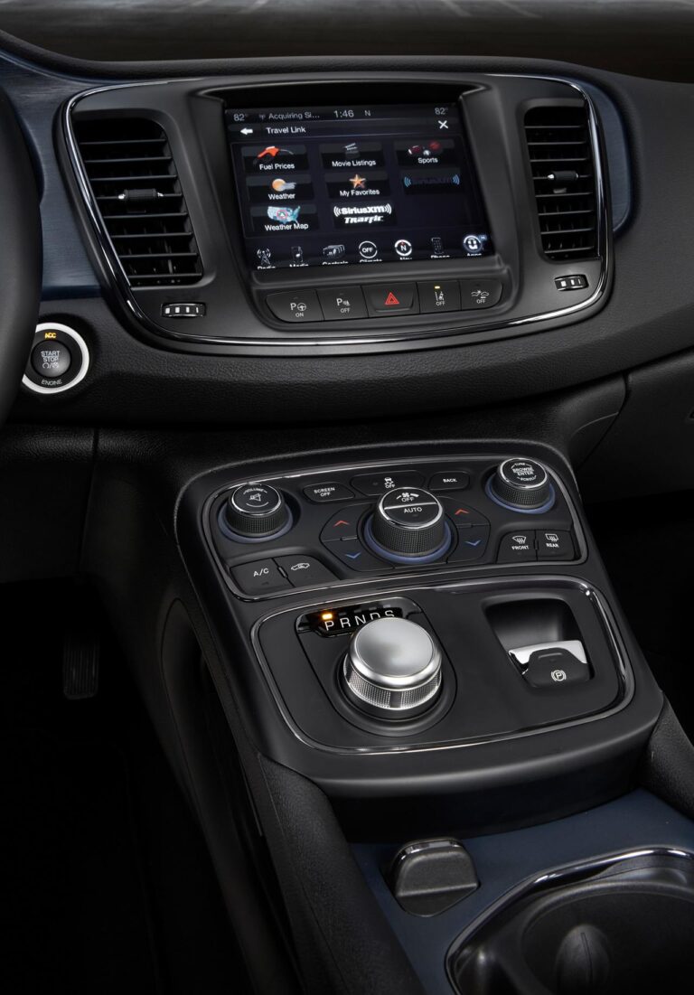 Centralnym punktem nowego wnętrza modelu 200 jest innowacyjna konsola centralna. Nowoczesny design jest estetyczny w wyglądzie, jednocześnie oferując inteligentną funkcjonalność, którą zapewnia pełne elektroniczne przełączanie biegów z pokrętłem rotacyjnym. Ta nowatorska technologia nie wymaga mechanicznych elementów tradycyjnych dźwigni zmiany biegów, które zajmują miejsce w centralnej części pojazdu, co pozwala projektantom Chryslera w pełni wykorzystać tę przestrzeń.