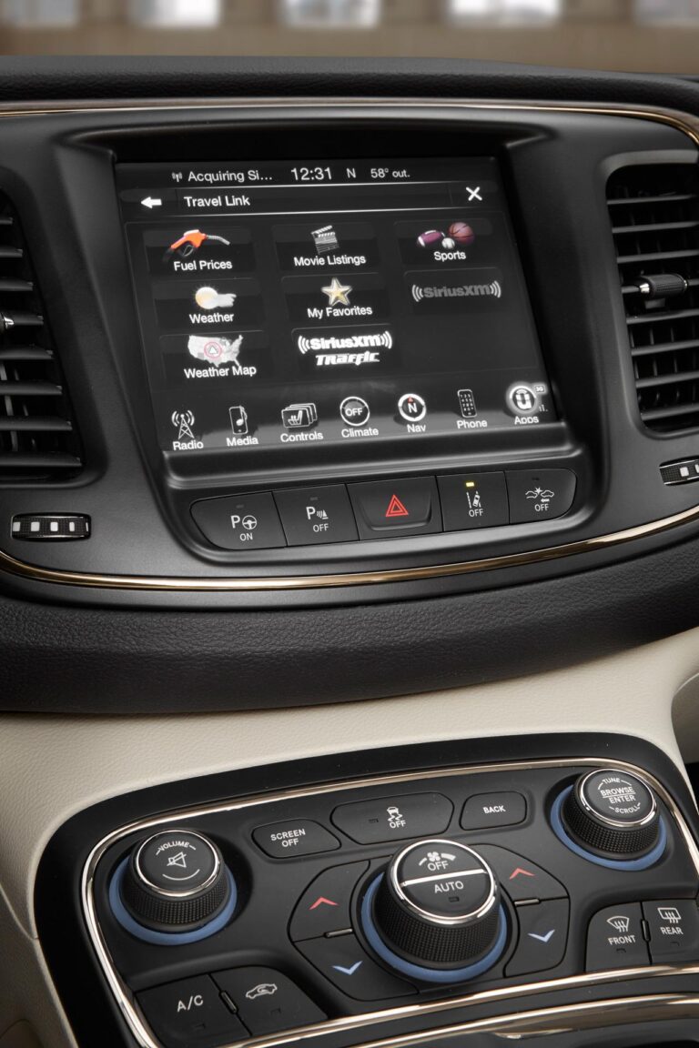 Chrysler 200 z 2015 roku wyposażony jest w dostępne, nagradzane centrum multimedialne Uconnect z 8.4-calowym ekranem dotykowym. Jest atrakcyjne, intuicyjne i łatwe w użyciu. Uconnect Access utrzymuje kierowców i pasażerów w kontakcie z przydatnymi informacjami, takimi jak ceny paliw i repertuary filmowe. Nawigacja głosowa, polecenia głosowe w trybie hands-free oraz funkcja zamiany mowy na tekst to niektóre z dostępnych funkcji, które pozwalają kierowcom skupić wzrok na drodze i ręce na kierownicy.