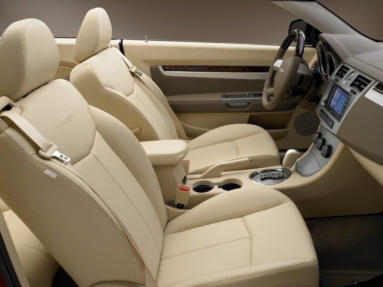 Wnętrze nowego 2008 Chrysler Sebring Convertible charakteryzuje się nowoczesnym, czystym designem z intensywnym naciskiem na jakość, szczegóły, rzemiosło i wykonanie. Miękkie powierzchnie w miejscach dotykowych, w tym pokrywa deski rozdzielczej i podłokietniki drzwi, uzupełniają luksusowe wnętrze kabrioletu.