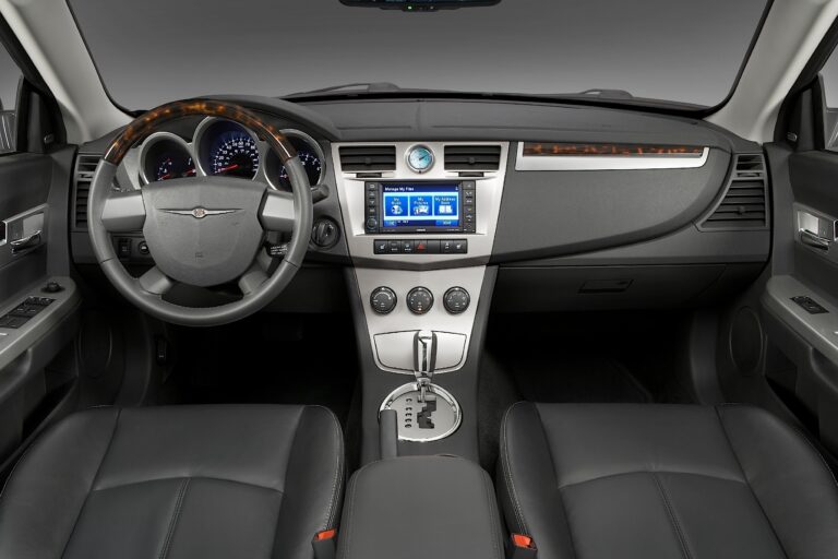 Zainspirowany skrzydlatą odznaką Chryslera, centralny panel kabrioletu wyposażony jest w analogowy zegar sygnatury Chryslera, otoczony podwójnymi otworami grzewczymi i klimatyzacyjnymi. Deska rozdzielcza Sebring Convertible zawiera również zamykaną schowek, który może zabezpieczyć ważne dokumenty i drobne przedmioty. Centralny konsolowy schowek ma podwójne pojemniki na przechowywanie i przesuwany podłokietnik, który przesuwa się o 3 cale, aby zapewnić wygodną pozycję dla wszystkich kierowców.