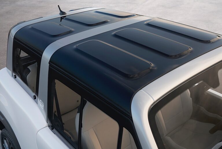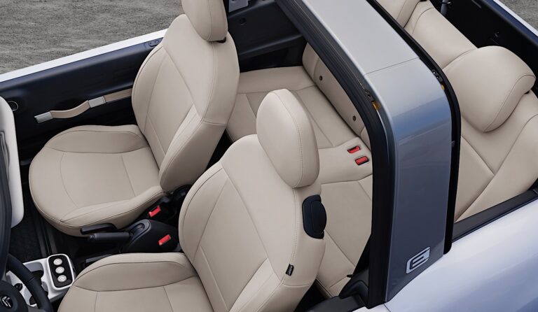 Nowy Citroën E-Mehari korzysta z szeregu ulepszeń projektowych, które zwiększają postrzeganą jakość. Citroën wykorzystał także swoje doświadczenie, aby zainstalować więcej wyposażenia, co znacząco poprawia bezpieczeństwo.
