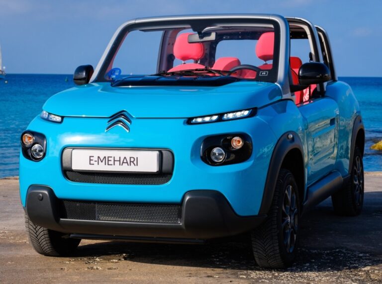 Citroën prezentuje nowego E-Mehari – elektrycznego kabrioletu w ikonicznym stylu, który przeszedł prawdziwy skok pokoleniowy pod względem designu i wyposażenia, zyskując na komforcie i wszechstronności. Nowy Citroën E-Mehari dostępny jest teraz w wersji Hard Top z bocznymi oknami i otwieranym tylnym oknem, przekształcając się w prawdziwy samochód rodzinny. Wnętrze zostało całkowicie zaprojektowane na nowo, zgodnie z charakterem marki, oferując wysoką jakość. Nowa deska rozdzielcza z kolorowymi akcentami i nowe fotele nadają samochodowi nowoczesny wygląd, a łatwy dostęp ułatwia wsiadanie do tylnych siedzeń. Oferuje przyjemność z jazdy wyłącznie elektrycznej w spokoju, dzięki stalowym belkom dachowym i nowemu wyposażeniu bezpieczeństwa, w tym czterem poduszkom powietrznym. Zaprojektowany w Paryżu i produkowany w Rennes, jest pierwszym elektrycznym pojazdem, który zdobył certyfikat „Origine France Guaranteed”. Nowy Citroën E-Mehari jest dostępny w cenie od 19 500 € z uwzględnionym bonusem ekologicznym.