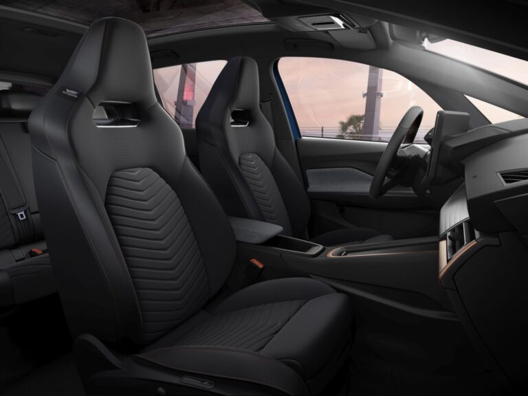 Nowa platforma MEB przynosi nowe możliwości dla wzornictwa wnętrza, maksymalizując przestrzeń dzięki sprytnemu wykorzystaniu obszarów przechowywania i funkcjonalności, takich jak wysoka konsola centralna, która łączy pełną łączność z maksymalną pojemnością przechowywania, a wszystko to w eleganckich materiałowych kodach. Ta cecha została zaprojektowana w tym samym materiale przypominającym neopren, co kubełkowe fotele, aby zmaksymalizować jakość wewnątrz.