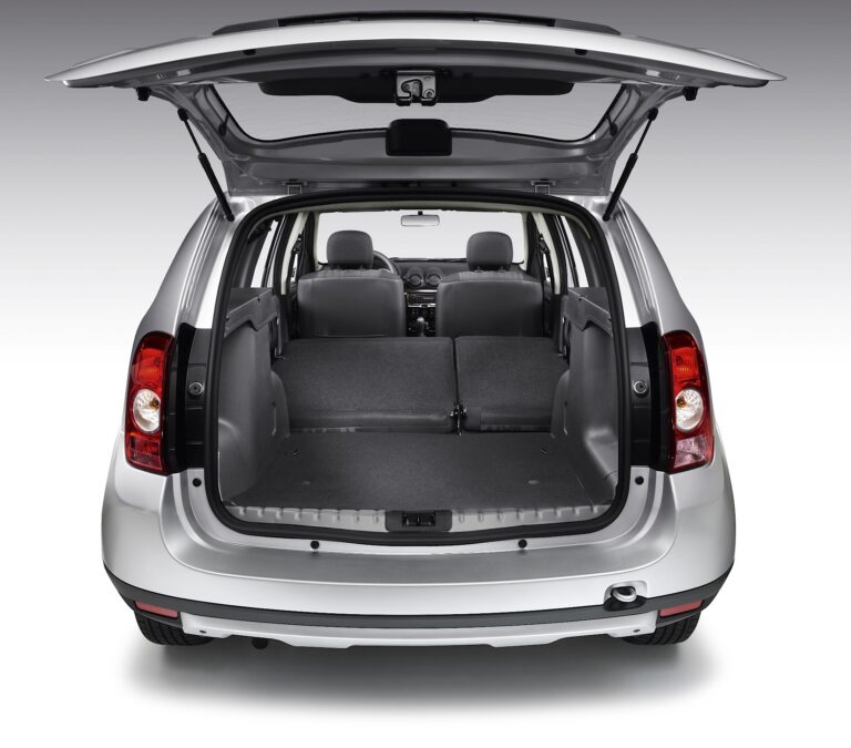 Pojemność bagażnika Dacii Duster również jest niezrównana, z objętością do 475 dm3 ISO. Po złożeniu tylnej kanapy i jej nachyleniu, imponująca zdolność ładunkowa przekracza nawet 1600 dm3 ISO.