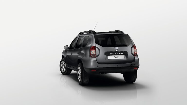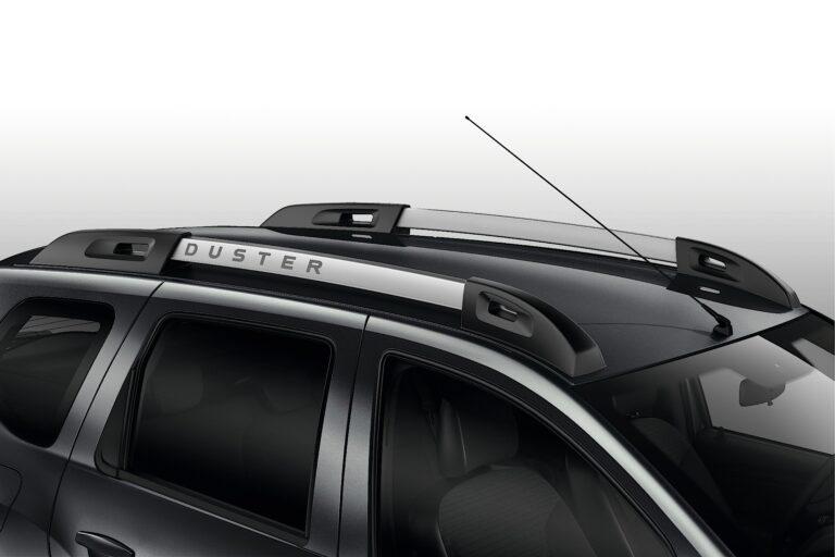 Nowe belki dachowe z oznaczeniem Duster i lamelowym wsparciem podkreślają SUV-owy charakter pojazdu, a nowe 16-calowe aluminiowe koła „Dark Metal” oraz opony „Mud and Snow” ożywiają sylwetkę nowej Dacii Duster.