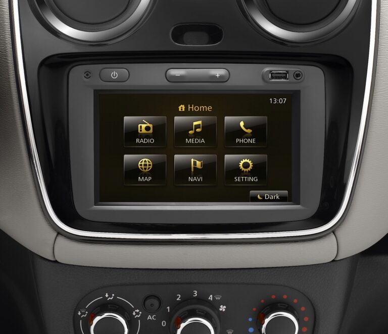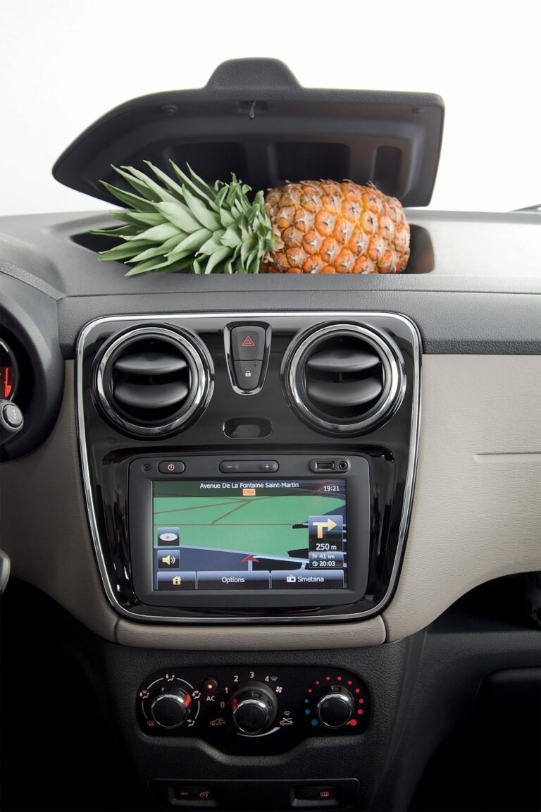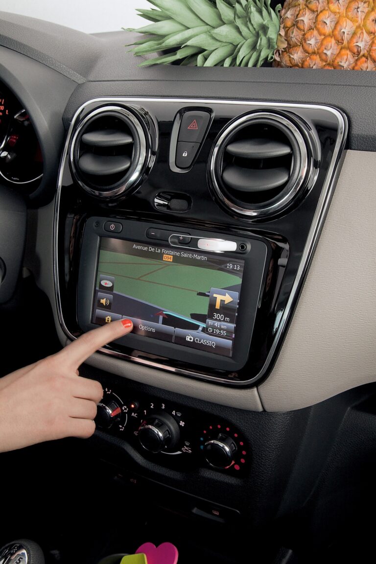 Dacia Lodgy jest wyposażona w całkowicie nowy system multimedialny: MEDIA NAV. Konkurencyjna cena, zgodnie z tradycją marki, wynosząca zaledwie 430 euro, sprawia, że MEDIA NAV łączy w sobie radio, gniazda pomocnicze (dla odtwarzaczy MP3 itp.), łączność Bluetooth oraz nawigację satelitarną z wykorzystaniem siedmiocalowego (18 cm) wyświetlacza dotykowego. Główne menu umożliwia prosty dostęp do sześciu podstawowych funkcji: radio, media, telefon, mapa trasy, nawigacja satelitarna i ustawienia. Dzięki technologii Bluetooth® kierowcy mogą prowadzić rozmowy telefoniczne bez użycia rąk oraz synchronizować swoją książkę kontaktów i rejestr wcześniejszych rozmów. Istnieje również możliwość przesyłania muzyki zdalnych odtwarzaczy przez system głośników samochodu. Ponadto dostępna jest opcja podłączenia iPoda lub smartfona przez złącza USB lub jack znajdujące się na desce rozdzielczej. Można je obsługiwać zarówno za pomocą wyświetlacza dotykowego, jak i przycisków na kierownicy, a tytuły utworów są wyświetlane na ekranie MEDIA NAV.