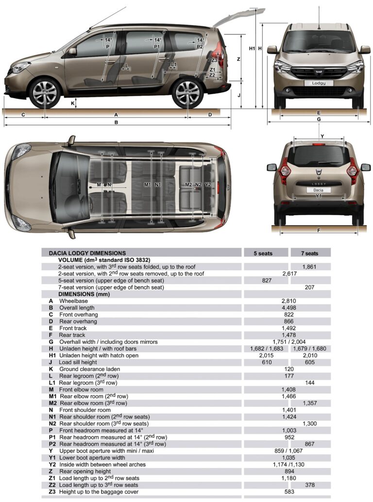 Rozmiar przestronnego bagażnika Dacii Lodgy nie będzie zaskoczeniem dla osób znających markę Dacia. W rzeczywistości jest jednym z największych w swoim segmencie, o pojemności od 2 617 dm3 w konfiguracji dwuosobowej, do 827 dm3 jako pięcioosobowy i 207 dm3 przy zamontowanych wszystkich siedmiu miejscach. Lodgy oferuje także 30 litrów przestrzeni do przechowywania w kabinie, w postaci różnych kieszeni i schowków. Szczególnie warto zwrócić uwagę na nową, trzylitrową przestrzeń na górze deski rozdzielczej oraz na tylny uchwyt na napoje i dużą kieszeń na drobiazgi.