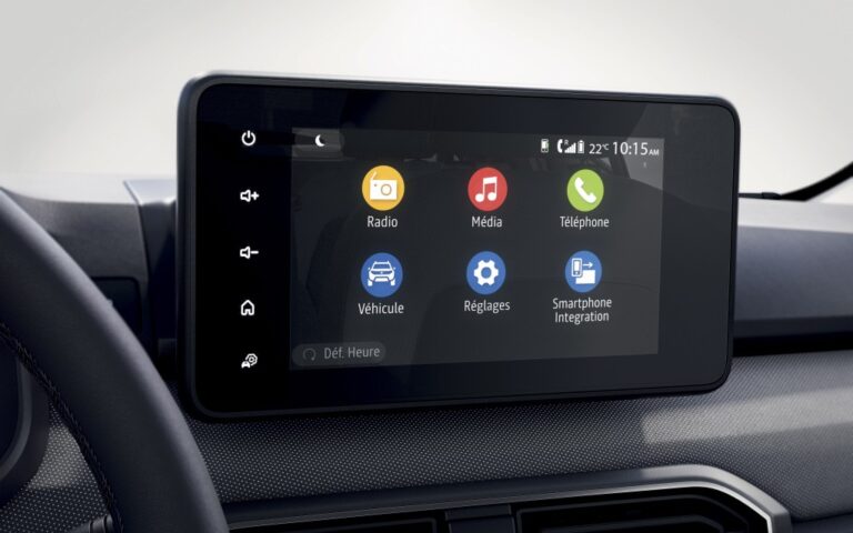 Z Media Control smartfony można umieścić na sprytnym, zdejmowanym uchwycie na smartfon, znajdującym się przed kierowcą, aby stały się zdalnym systemem multimedialnym za pomocą nowej darmowej aplikacji Dacia Media Control oraz połączenia Bluetooth lub USB.