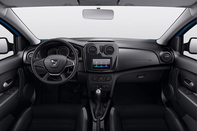Wewnątrz Sandero Stepway ma dedykowane tapicerki, z nazwą „Stepway” haftowaną na przednich oparciach. Ważnym krokiem naprzód była jednostka infotainment, nazwana MediaNav, kompatybilna z Android Auto i Apple CarPlay. Miejsce na tylnych siedzeniach było ograniczone do dwóch dorosłych, ale wystarczające na miasto lub krótkie podróże.