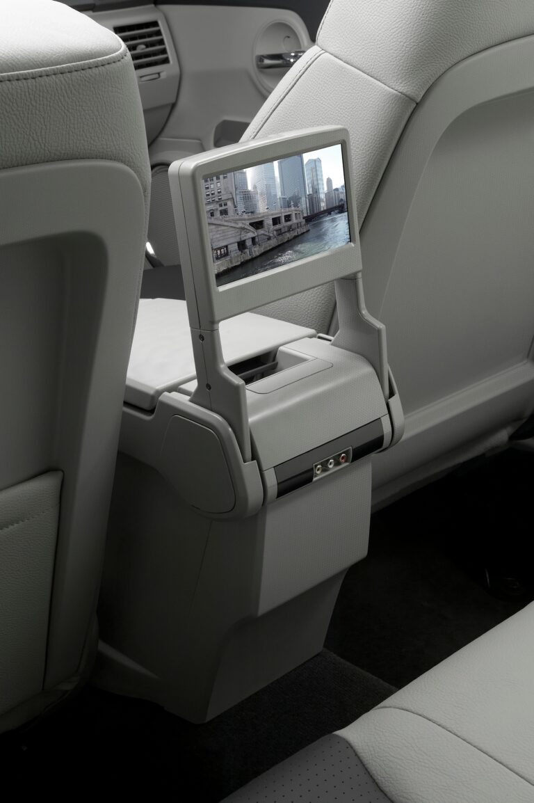 - Dostępny system rozrywki DVD dla pasażerów z tyłu, który zawiera radio AM/FM z odtwarzaczem CD/DVD MP3, zmieniarkę CD/DVD na sześć płyt oraz radio cyfrowe SIRIUS® Satellite