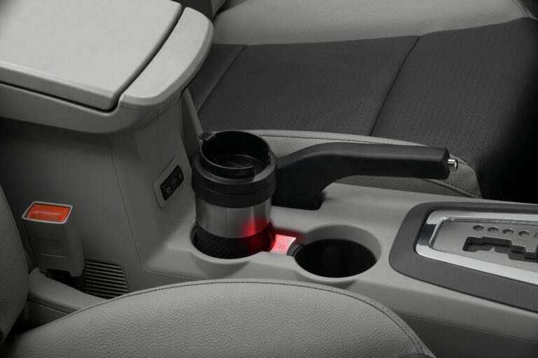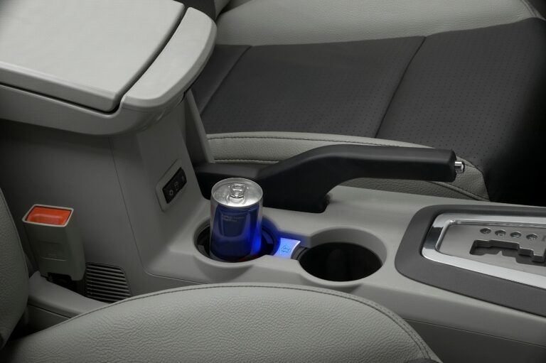 - Podgrzewany/chłodzony przedni uchwyt na kubki, który utrzymuje zimne napoje w chłodzie, a gorące napoje w cieple. System podgrzewa do 140 stopni Fahrenheita lub chłodzi do 35 stopni Fahrenheita