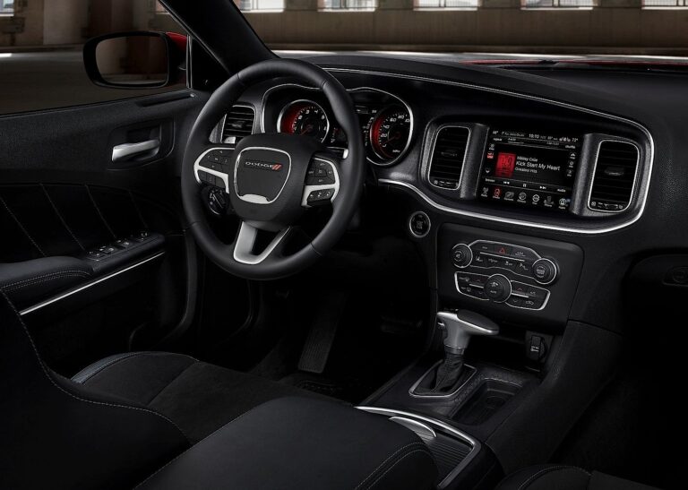 Charger oferuje osiem całkowicie nowych wykończeń wnętrza, w tym czarny i tungstenowy materiał, czarną i perłową skórę oraz czarną i rubinową czerwoną skórę.