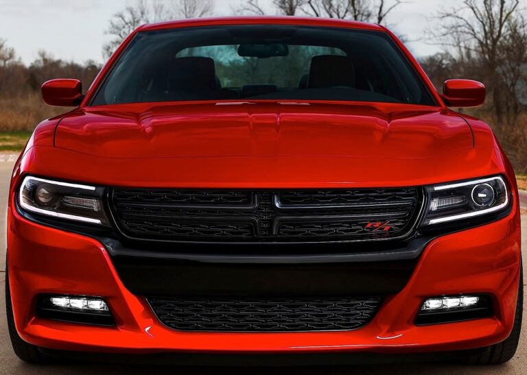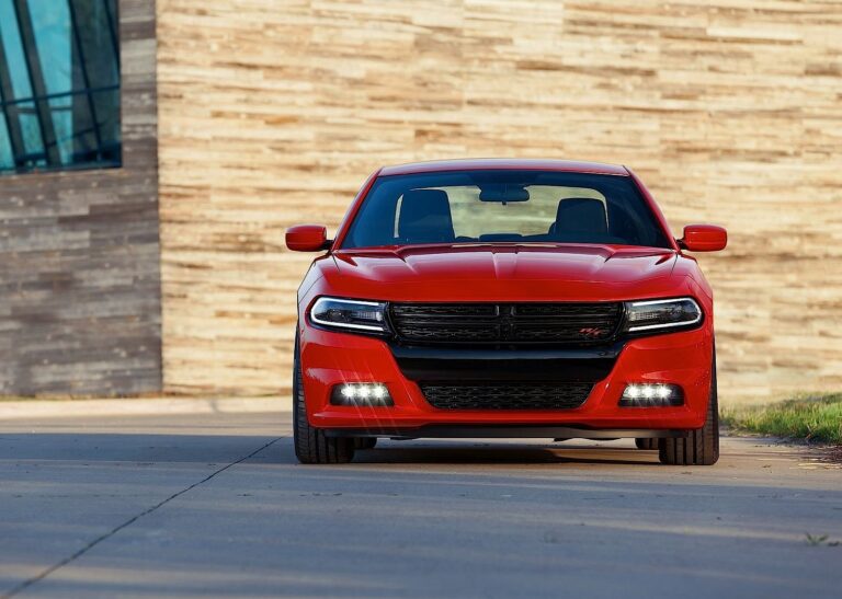Zaczynając od przodu, nowy styl przedniej części Chargera na rok 2015 wprowadza całkowicie nową kratkę w kształcie krzyża, lampy przeciwmgłowe LED (w modelach SXT i R/T), kierunkowskazy oraz światła do jazdy dziennej (DRL), a także nowe reflektory projekcyjne (światła HID w wyższych wersjach). Nowa, pochylona w przód atrapa Chargera nadaje mu pewny postawę superbohatera. Czarne grafiki na przedzie tworzą maskę, która nadaje rodzinny rys z Dodge Dart i Durango. Smukłe, wydłużone DRL oraz krata o pełnej szerokości podkreślają szerokość sedana; logo Dodge powtarza się w zewnętrznych rogach każdej lampy.