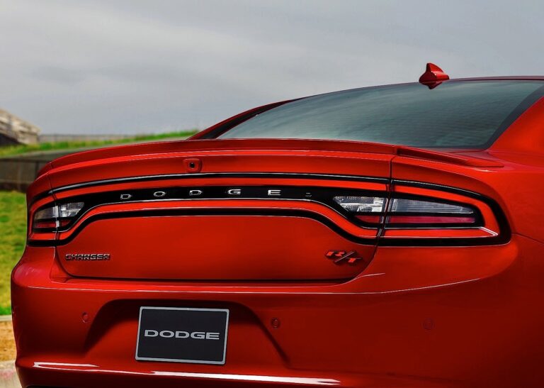 Przeprojektowanie tyłu zaczyna się w punkcie połączenia z słupkiem C, który został przesunięty w tył, aby stworzyć jeszcze bardziej wyraźny wygląd fastback, połączony z krótszym tyłem. Nowy trzyczęściowy spojler jest bardziej zintegrowany z pokrywą bagażnika, podczas gdy sygnaturowa lampa tylna LED „tor wyścigowy” przyjmuje tę samą ciągłą linię światła, która zadebiutowała w nowym Dodge Durango z 2014 roku. Centralna lampa stopu jest przeniesiona z góry pokrywy bagażnika na linię dachu wewnątrz tylnej szyby, co pozwala na centrowanie kamery cofania Chargera.