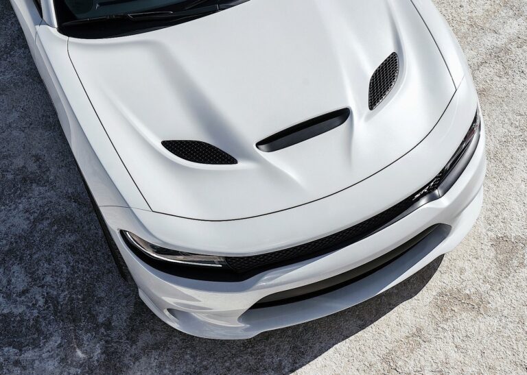 Z przodu Charger SRT Hellcat zyskuje większą aluminiową maskę z wypukłością mocy, która posiada dedykowany „zimny” wlot powietrza – wizualny akcent z pierwszego Viper’a coupe wyprodukowanego w 1996 roku – oraz podwójne wyciągi powietrza, aby zapewnić skuteczne usuwanie ciepła oraz ograniczenie turbulencji w komorze silnika.