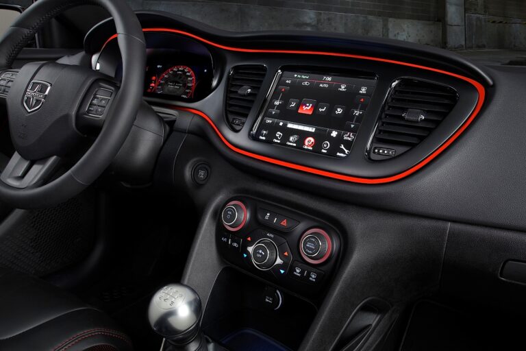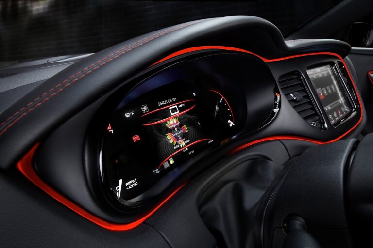 Całkowicie nowy Dodge Dart z 2013 roku oferuje technologie wiodące w klasie oraz funkcje, których nie znajdziesz w konkurencyjnych modelach, czarując i zachwycając zarówno kierowców, jak i pasażerów. Przykłady to ekskluzywna w klasie płyta floating island, 8,4-calowy system mediów Uconnect Touch, 7-calowy wyświetlacz zestawu wskaźników Thin Film Transistor (TFT) oraz eleganckie oświetlenie ambientowe.