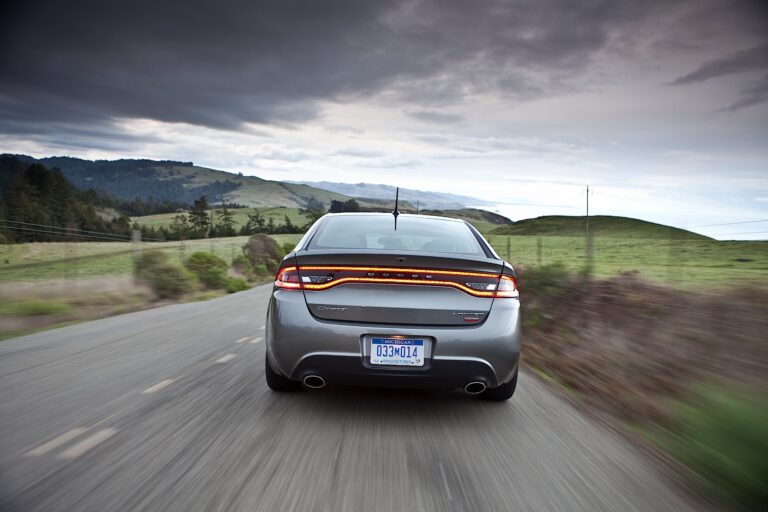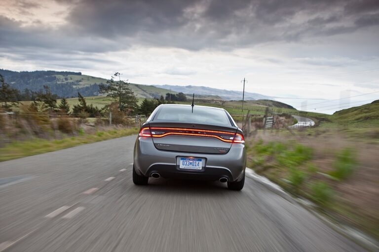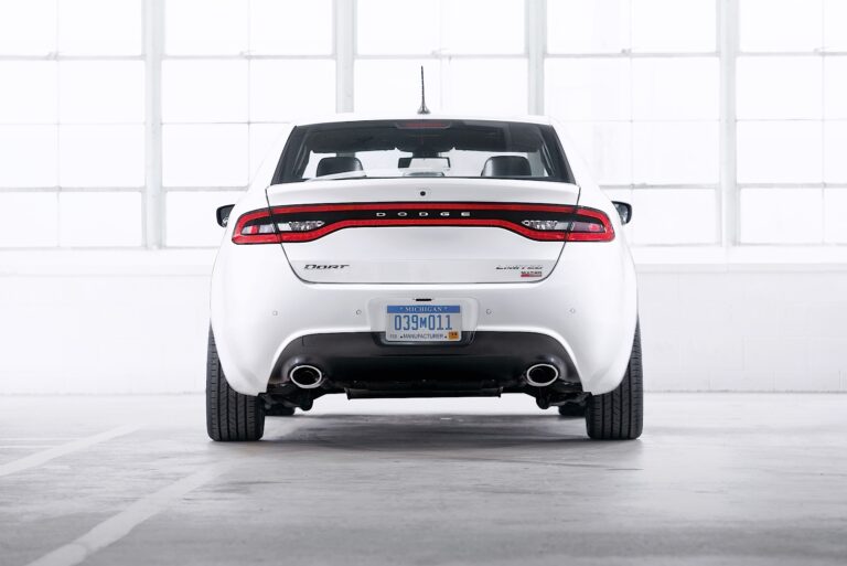 Tył całkowicie nowego Darta z 2013 roku ma opcjonalne tylne lampy o pełnej szerokości inspirowane Chargerem, z 152 pośrednimi diodami LED oraz podwójnymi wydechami zamontowanymi w tylnej części nadwozia.
