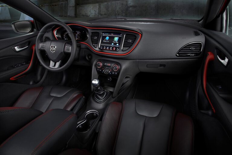 Projektanci Dodge’a skoncentrowali się na stworzeniu nowoczesnej mieszanki precyzyjnego rzemiosła, technologii najwyższej klasy, ekscytujących wybuchów kolorów i ręcznie rzeźbionych kształtów, projektując wnętrze Darta, które zostało wykonane z materiałów i technologii przeważnie spotykanych w droższych segmentach pojazdów. Zaczynając od nowoczesnego DNA Dodge’a i poprzez zastosowanie innowacyjnego oświetlenia wnętrza, wysokiej jakości materiałów dotykowych oraz nowoczesnych funkcji, Dodge Dart z 2013 roku jest pełen fajnych udogodnień i niespodzianek zarówno dla kierowców, jak i pasażerów.