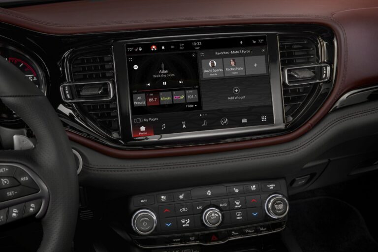 Dostępny 10,1-calowy ekran dotykowy z Uconnect 5 jest prawie 20% większy i umożliwia prędkości przetwarzania do pięciu razy szybsze niż w poprzedniej generacji. 8,4-calowy ekran dotykowy Uconnect jest standardowy w modelach Durango SXT i GT.