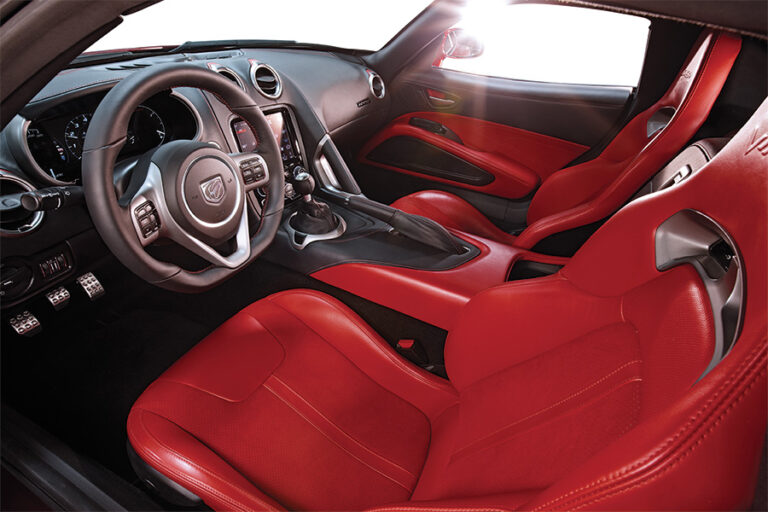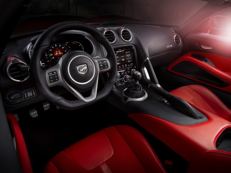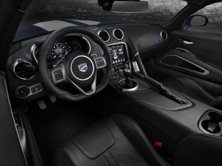 „Nasz pasjonujący zespół projektantów i inżynierów SRT postanowił przeprojektować wnętrza Viper przy użyciu naprawdę premium materiałów, z ekstremalną uwagą poświęconą szczegółom oraz najnowszym technologiom wyświetlania informacji” – powiedział Klaus Busse, szef projektowania wnętrz w Chrysler Group LLC. „Nowa kabina nosi motyw skoncentrowany na kierowcy, który nagradza zmysły prawdziwym uczuciem supersamochodu i jego wyglądem.”