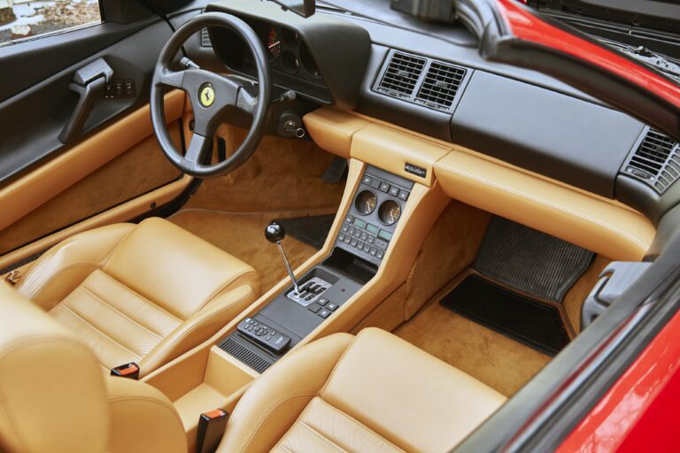 Wewnątrz dwuosobowego roadstera znalazły się nowe wnętrze oraz zestaw wskaźników. Jego pomarańczowe wskaźniki na czarnym tle były łatwe do odczytania. Kolumna kierownicy była regulowana pod względem wysokości i miała dłuższy skok niż w modelu 348 przed modernizacją. Na środkowej konsoli zamontowano gałkę zmiany biegów w metalowym wzorze. Czarna środkowa część zawierała sterowanie systemem klimatyzacji oraz ukrytą kieszeń na górze na radio.