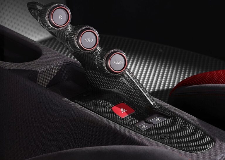 Ergonomia wnętrza jest całkowicie funkcjonalna, wszystkie elementy sterujące skupione są wokół kierowcy oraz na kierownicy. Koncepcja ta została dodatkowo wzmocniona dzięki zastosowaniu ikonicznego mostka, węglowego skrzydła, które rozciąga się nad centralnym tunelem, umieszczając kontrolki skrzyni F1 w idealnym kącie dla kierowcy. Jest również wygodna poduszka pod nogi po stronie kierowcy na tunelu.