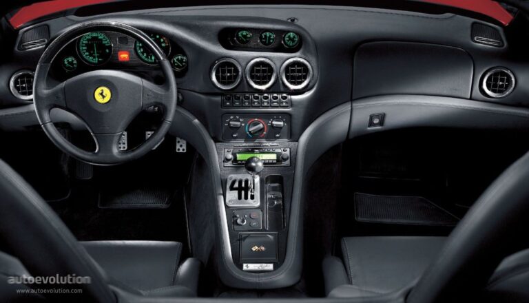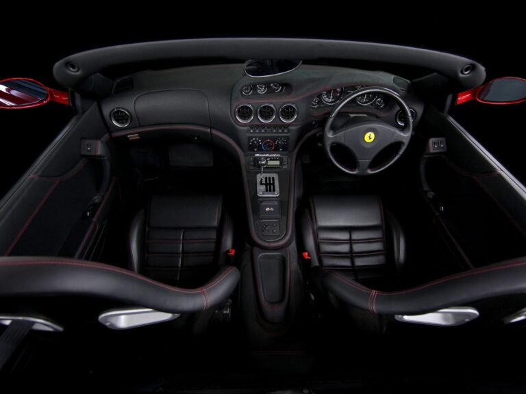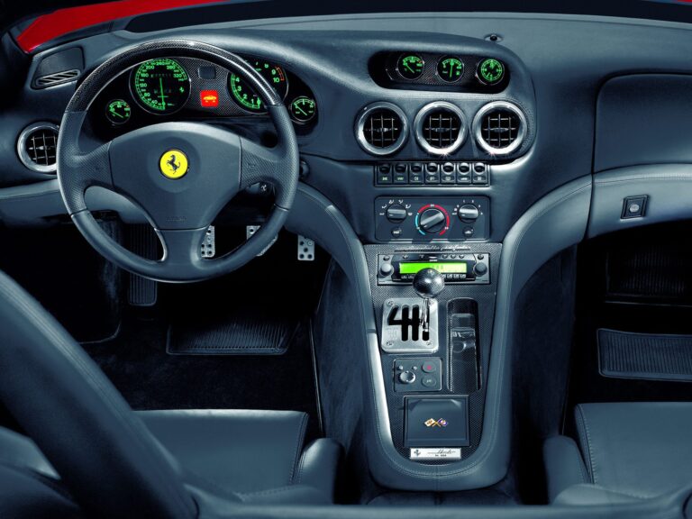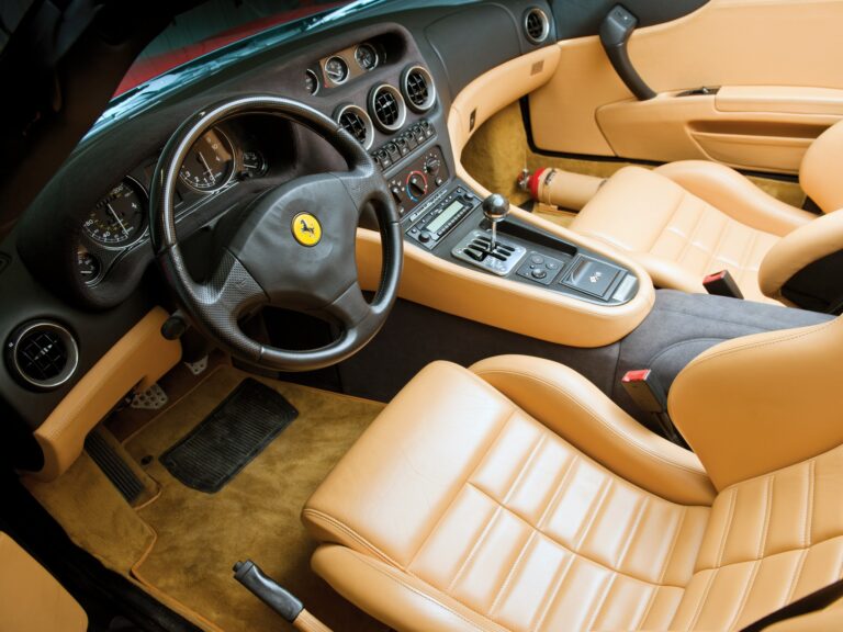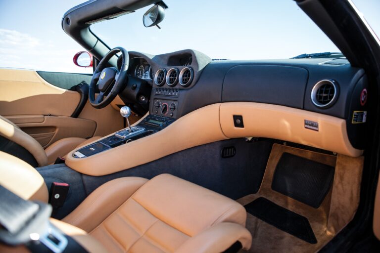 Wnętrze dwuosobowego roadstera było dostosowywane do każdego egzemplarza. W większości pojazdów wybrano sportowe fotele kubełkowe z skórzaną tapicerką. Niektóre zamówiono z Alcantary. Na konsoli centralnej, ręczna dźwignia biegów wykonana była z aluminium, z charakterystycznym dla Ferrari układem biegów. Na centralnym panelu i w zestawie wskaźników projektanci zainstalowali elementy wykończenia z włókna węglowego.