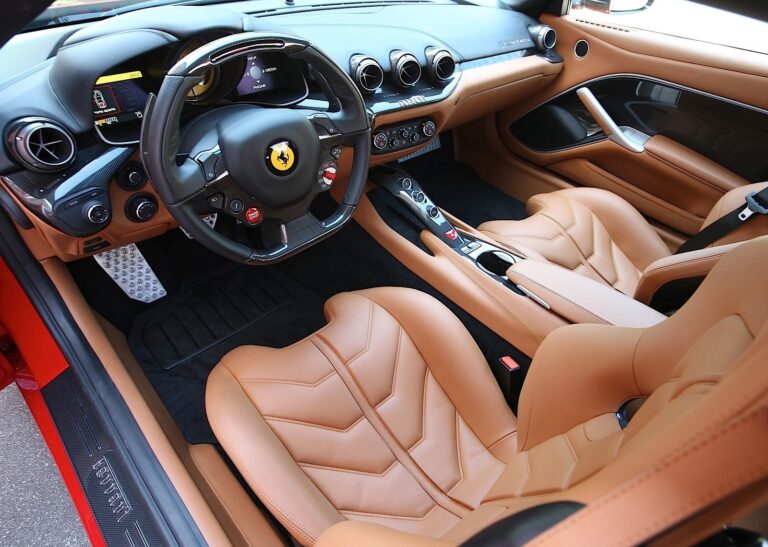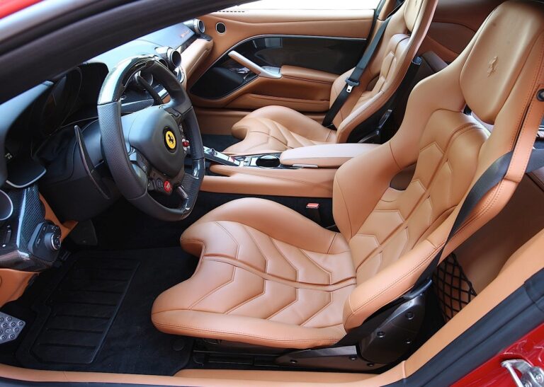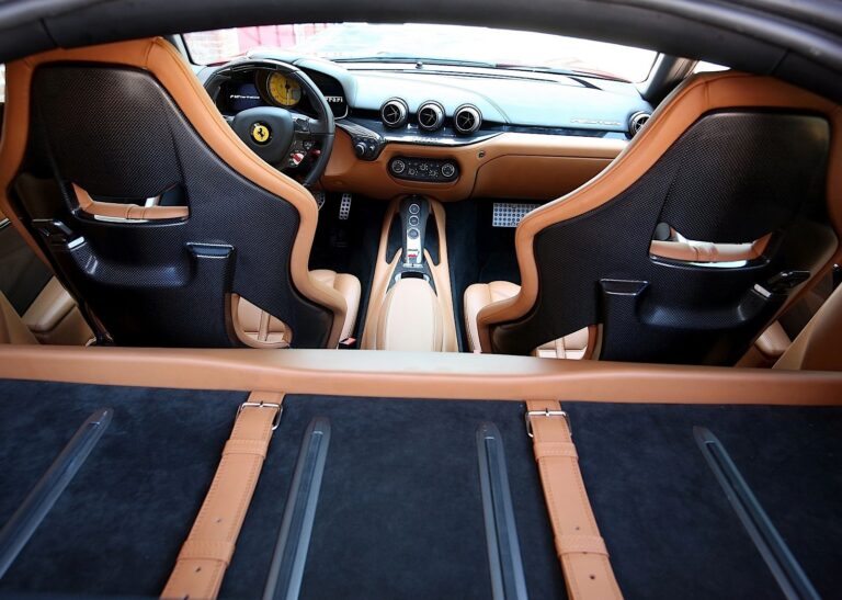 Głównym celem foteli Ferrari F12berlinetta było jak największe zredukowanie ich objętości, aby zapewnić swobodę ruchów pasażerów w kabinie, a jednocześnie zagwarantować, że będą niezwykle wygodne i będą respektować geometrie boczne. Podparcie głowy jest w pełni zintegrowane z oparciem, nadając fotelowi nowoczesny, inspirowany torami wyścigowymi wygląd.