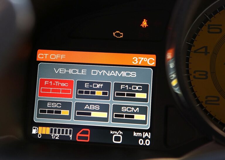 Lewy panel steruje funkcją Vehicle Dynamic Assistance, która oferuje natychmiastową ocenę stanu samochodu i potencjalnych poziomów wydajności na lewym wyświetlaczu. Gdy jest aktywowany w trybach manettino RACE, CT-Off i ESC-Off, czyni jazdę jeszcze bardziej angażującą oraz bezpieczną, informując kierowcę o optymalnych warunkach dla samochodu w każdej chwili. Specjalny algorytm szacuje stan samochodu (temperatury hamulców, opon i silnika) na podstawie różnych parametrów dynamicznych (przyspieszenie boczne, przyspieszenie wzdłużne, prędkość, obroty silnika). Następnie powiadomi kierowcę o powyższych warunkach, używając następujących komunikatów: WARM UP (wymagana dalsza rozgrzewka komponentów); GO (optymalne warunki do maksymalnych osiągów); OVER (przegrzanie, komponenty muszą się schłodzić).