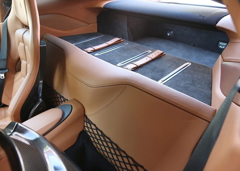 Tył kokpitu zawiera tapicerowaną kanapę z pasekami skórzanymi do zabezpieczania bagażu. Przestrzeń dla pasażerów jest naprawdę obszerna – fotele są wygodne dla osób o wzroście do 1,95 m (6’4″) – podobnie jak bagażnik (320 litrów). Przestrzeń bagażowa może być zwiększona do 500 litrów, obniżając tylną panel, co czyni Ferrari F12berlinetta idealnym do dłuższych podróży w towarzystwie pasażera.