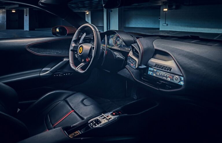 Gdy silnik i silniki są wyłączone, wskaźniki pokładowe gasną, nadając kokpitowi wspaniały, smukły, minimalistyczny wygląd. Zgodnie z tradycją Ferrari, domyślny ekran zdominowany jest przez dużą okrągłą wskazówkę obrotomierza, która tym razem jest otoczona przez wskaźnik naładowania baterii. Ekran nawigacji znajduje się z jednej strony obrotomierza, a ekran sterowania audio z drugiej.