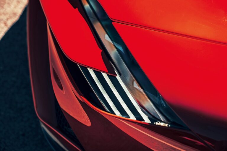 Innym charakterystycznym rozwiązaniem są reflektory, które przeszły z L-kształtnego wyglądu do smukłej, szczelinowej konstrukcji zintegrowanej z wlotami powietrza hamulca, co prowadzi do charakterystycznego kształtu litery C, nadającego przód samochodu oryginalny i futurystyczny wygląd.