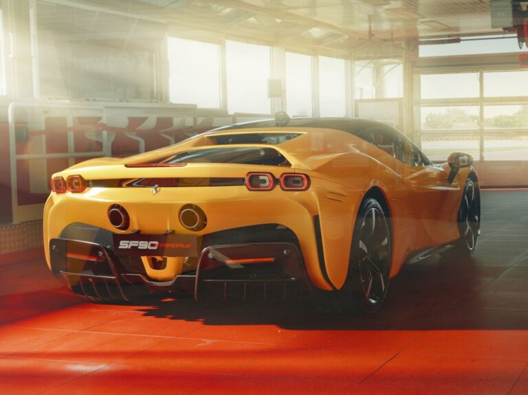 Nazwa SF90 pochodzi od 90. rocznicy Scuderia Ferrari (ich działu wyścigowego). Pakiet technologiczny robi wrażenie na każdym fanie samochodów sportowych. Silnik V8 o pojemności 4,0 litrów osiąga 780 koni mechanicznych dzięki turbosprężarce. Pozostałe 220 koni pochodzi z trzech silników elektrycznych zamontowanych w celu wsparcia startu pojazdu. Jako że SF90 był punktem zwrotnym w historii marki, został wyposażony w system napędu na wszystkie koła. Choć nie był to pierwszy Ferrari z napędem AWD, był to pierwszy sportowy model Ferrari z napędem na cztery koła. A wyniki odpowiadały wyglądowi pojazdu.