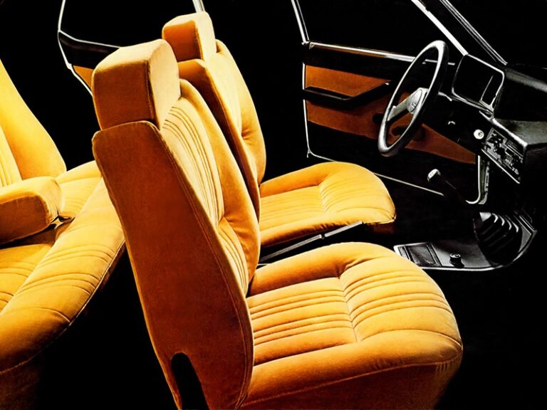 Wewnątrz oferował wygodne fotele z przodu, wyposażone w zagłówki. Z tyłu wystarczająco miejsca było dla maksymalnie dwóch dorosłych pasażerów. Ze względu na intruzyjny tunel transmisyjny, trudno było pomieścić trzech pasażerów, tym bardziej że były tylko dwa zagłówki. Instrumenty były umieszczone w prostokątnej tablicy rozdzielczej, z kwadratowymi wskazówkami dla obrotomierza i prędkościomierza. Na górze, pośrodku, znajdował się zegar analogowy.