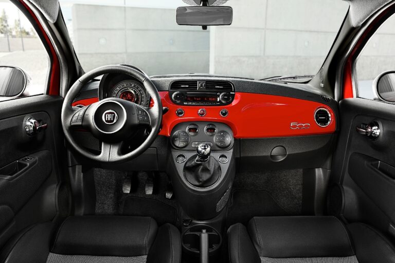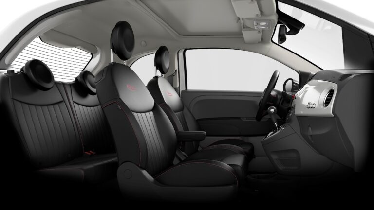 W środku Fiat kontynuował motyw retro i zainstalował płaską deskę rozdzielczą, ale z nowoczesnymi funkcjami. Wysoka środkowa kolumna pomieściła dźwignię zmiany biegów na dolnej części, podczas gdy system audio zajmował górną część. W obrębie zestawu wskaźników producent umieścił szeroki prędkościomierz z wyświetlaczem LCD w środku, wyświetlającym inne informacje z komputera pokładowego. W zależności od poziomu wyposażenia, kierowcę rozpieszczała skórzana kierownica, ręcznie szyta. Model 500 oferował cztery miejsca w kabinie, jednak żadne z nich nie były komfortowe dla wysokich kierowców.