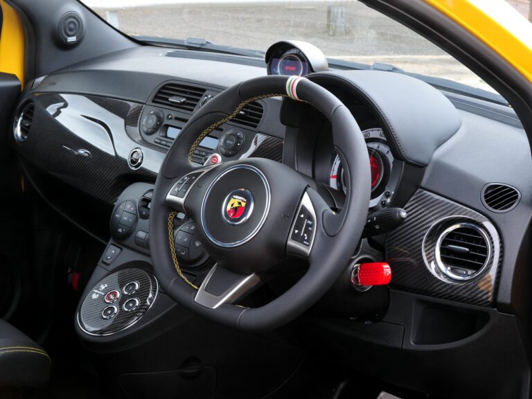 Wnętrze również zostało spersonalizowane i demonstruje dbałość o szczegóły oraz sportowy styl, które są wspólne dla obu marek. Wnętrze zostało wyposażone w fotele „Abarth Corsa by Sabelt”, wykończone czarną skórą, z muszlą i podstawą siedzenia z włókna węglowego. Fotele te oferują doskonałe połączenie cech wyścigowych – niska waga (o 10 kg lżejsze niż standardowe fotele) oraz zdolność do stabilnego trzymania ciała wobec sił bocznych i podłużnych, dzięki elementom wsparcia wypełnionym pianką odporną na zgniatanie – z ergonomią i komfortem foteli drogowych.