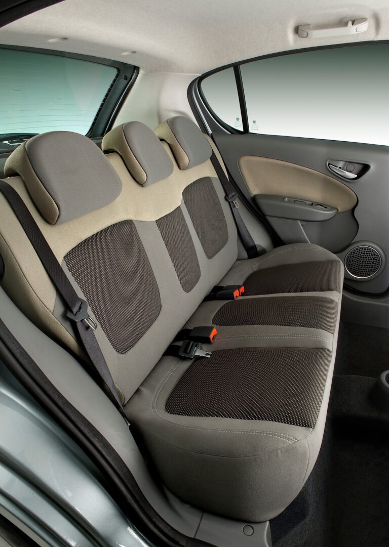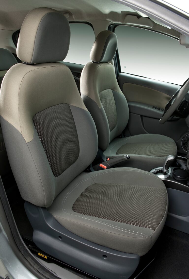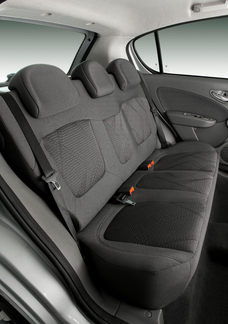 Foteliki są nowego typu i zaprojektowane tak, aby były bardziej ergonomiczne oraz wygodne. Ich konstrukcja jest lekka i mocna, oraz bardzo bezpieczna. Fotele przednie mają system zapobiegający zsunięciu się i regulację wzdłużną za pomocą szyn. Fotel kierowcy może mieć regulację wysokości za pomocą dźwigni oraz podparcia dla komfortu. Tylny fotel oferuje dwie pozycje oparcia, aby zwiększyć objętość bagażnika. Można go również złożyć na płasko, tworząc większą przestrzeń ładunkową. Wszystkie zagłówki foteli i podłokietniki mają technologię pourinplace, co oznacza „wtrysk” pianki bezpośrednio do tkaniny, co pozwala na stworzenie nowych i bardziej ergonomicznych kształtów.