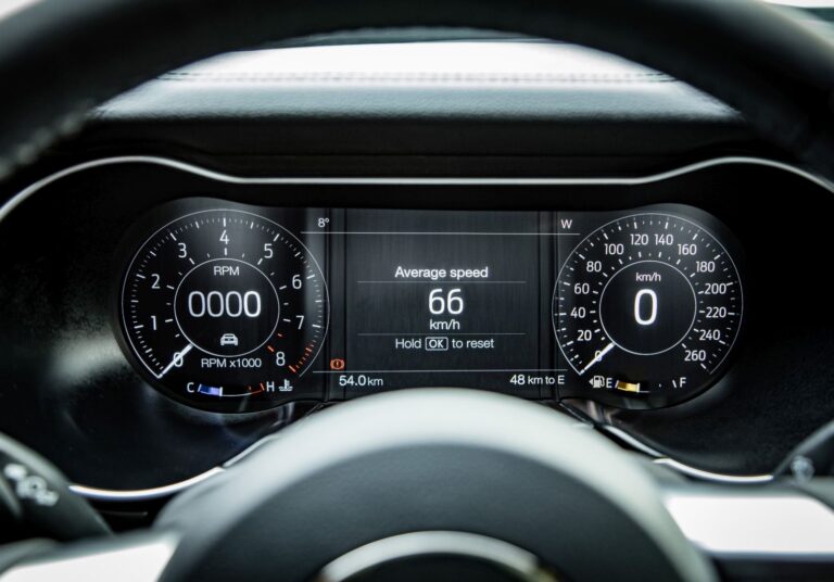 12-calowy wyświetlacz służył do konfigurowania trybów jazdy samochodu, mówiąc dokładniej, do ustawiania układu kierowniczego, zawieszenia i dźwięku wydechu. Choć użytkownicy mogli przełączać się między różnymi trybami jazdy, mogli również dodać swój spersonalizowany. Na przykład, ponieważ wydech był dość głośny, mogli wybierać tryb cichy przy uruchamianiu silnika. Owszem, „cichy” to nie do końca odpowiednie określenie dla silnika V8 o pojemności 5.0 litrów i mocy 480 KM.