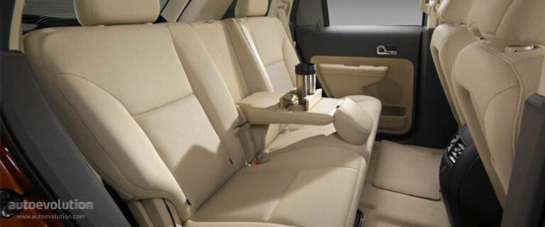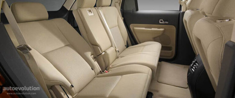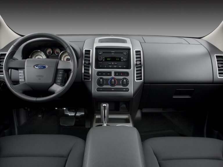 Wewnątrz Ford zamontował kokpit inspirowany sedanem, z centralnym panelem, który mieścił jednostkę infotainment oraz pokrętła do sterowania klimatyzacją. Ponieważ samochód był większy niż zwykły sedan, występowała szczelina między konsolą centralną a centralnym panelem. W podstawowych wersjach Edge był oferowany z materiałowymi siedzeniami dla pięciu pasażerów. W opcji dostępne były skórzane fotele z kontrastowym przeszyciem. Oparcia tylnych siedzeń były regulowane, aby długie podróże były bardziej komfortowe.