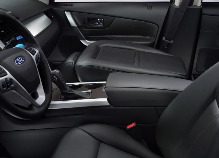 - Pakiet dźwiękowy i szkło akustyczne: Wnętrze wyposażono w bardziej absorpcyjny pakiet dźwiękowy, który skuteczniej redukuje hałas wysokoczęstotliwości niż materiały działające jedynie jako bariera. Efektem jest poprawiony wskaźnik artykulacji, który mierzy, jak łatwo usłyszeć i zrozumieć osobę w pojeździe. Ford Edge 2011 wyposażony jest również w akustyczny sufit, a mikrofon systemu SYNC® został przeniesiony bliżej kierowcy w celu poprawy rozpoznawania głosu. Szyba czołowa została również pogrubiona i teraz jest akustycznie laminowana we wszystkich modelach Forda Edge. Wreszcie, wypiekane na gorąco pianki rozprężne w błotnikach i filarach D pomagają uszczelnić niechciany hałas drogowy.